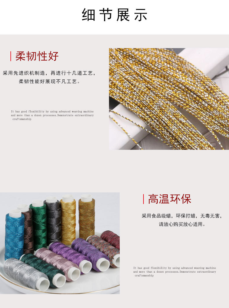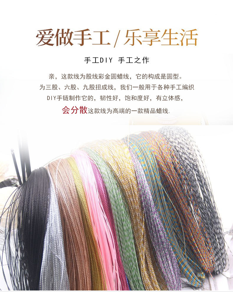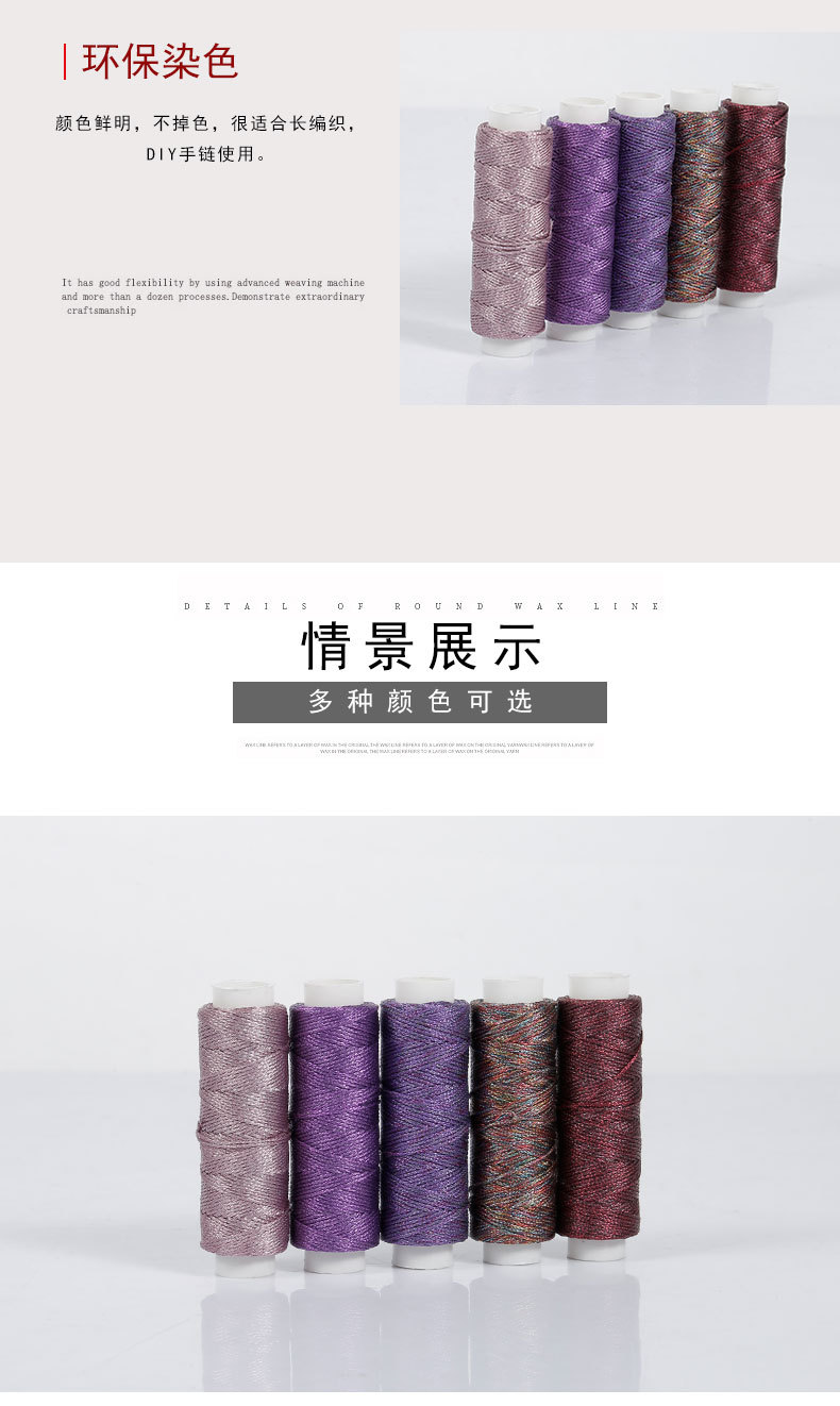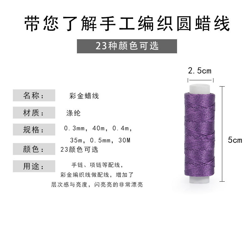 원형 왁스 실 도매 0.3 0.4 0.5mm 23색 수제 DIY 뜨개질 환색 금실 폴리에스터 왁스 실