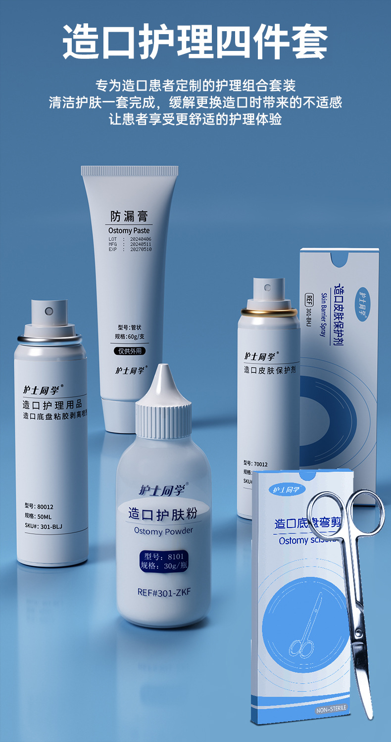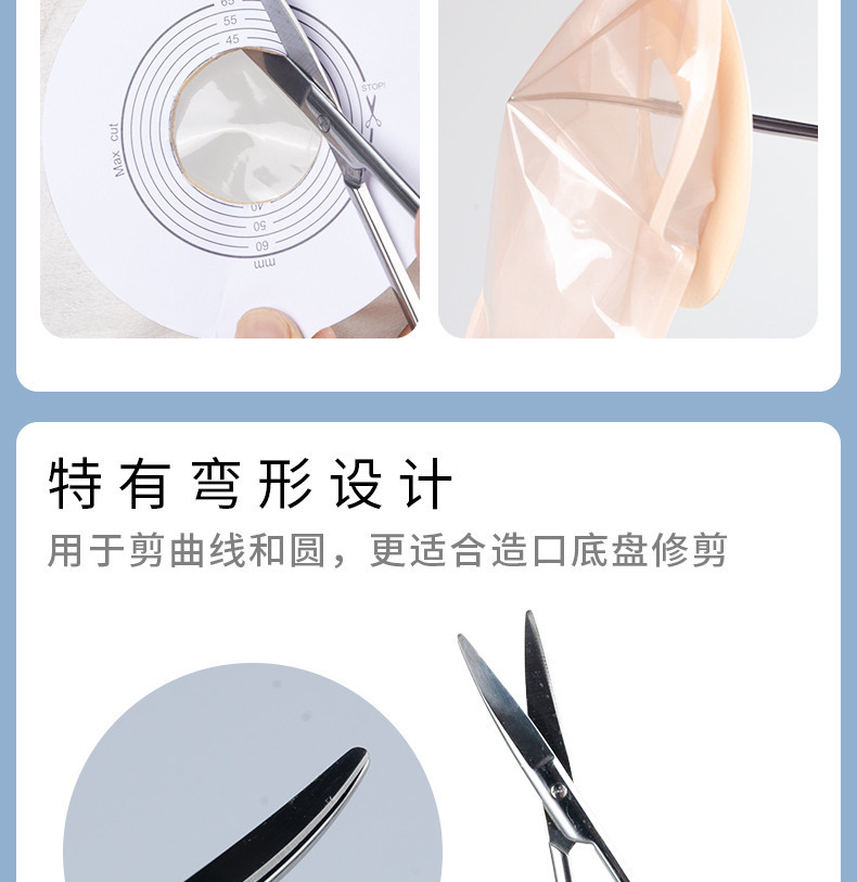 간호사 동료들이 사용하는 특수 플라스틱 백용 접착패드 절단용 가위, 둥근 끝 절단용 가위, 인공항문 절단용 가위, 대변 주머니 접착패드 절단용 곡선 가위
