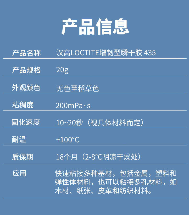 LOCTITE Henkel Locktite 435 접착제 의료 및 의료 빠른 건조 접착제 낮은 미백 낮은 냄새 금속 플라스틱 고무