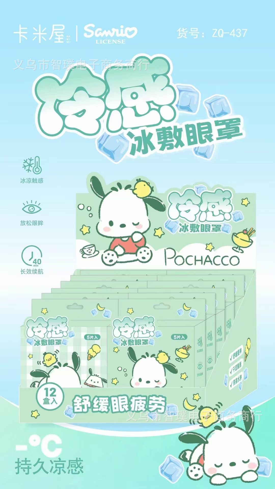 산리오 아이스 아이 마스크 여름 눈 피로 아이 마스크 휴대용 차광 독립 포장 아이스 아이 마스크